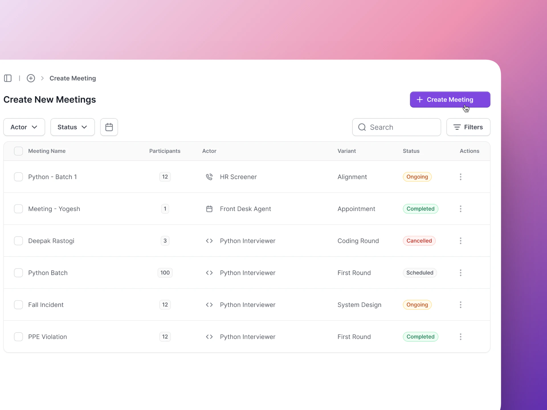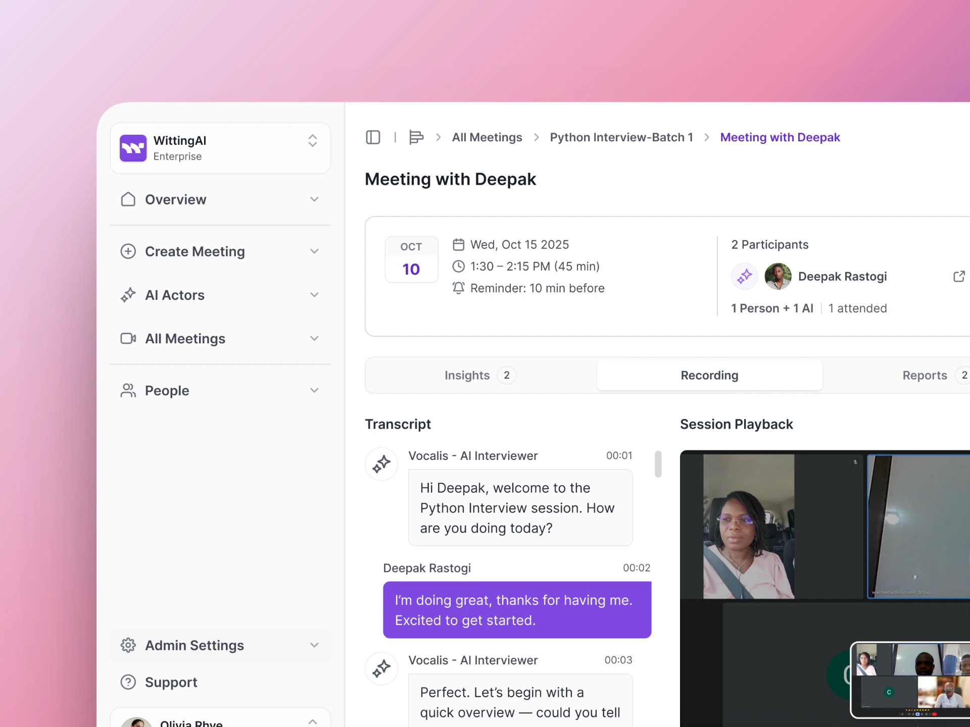 | In Progress | The AI Actor has joined and the interview is happening |