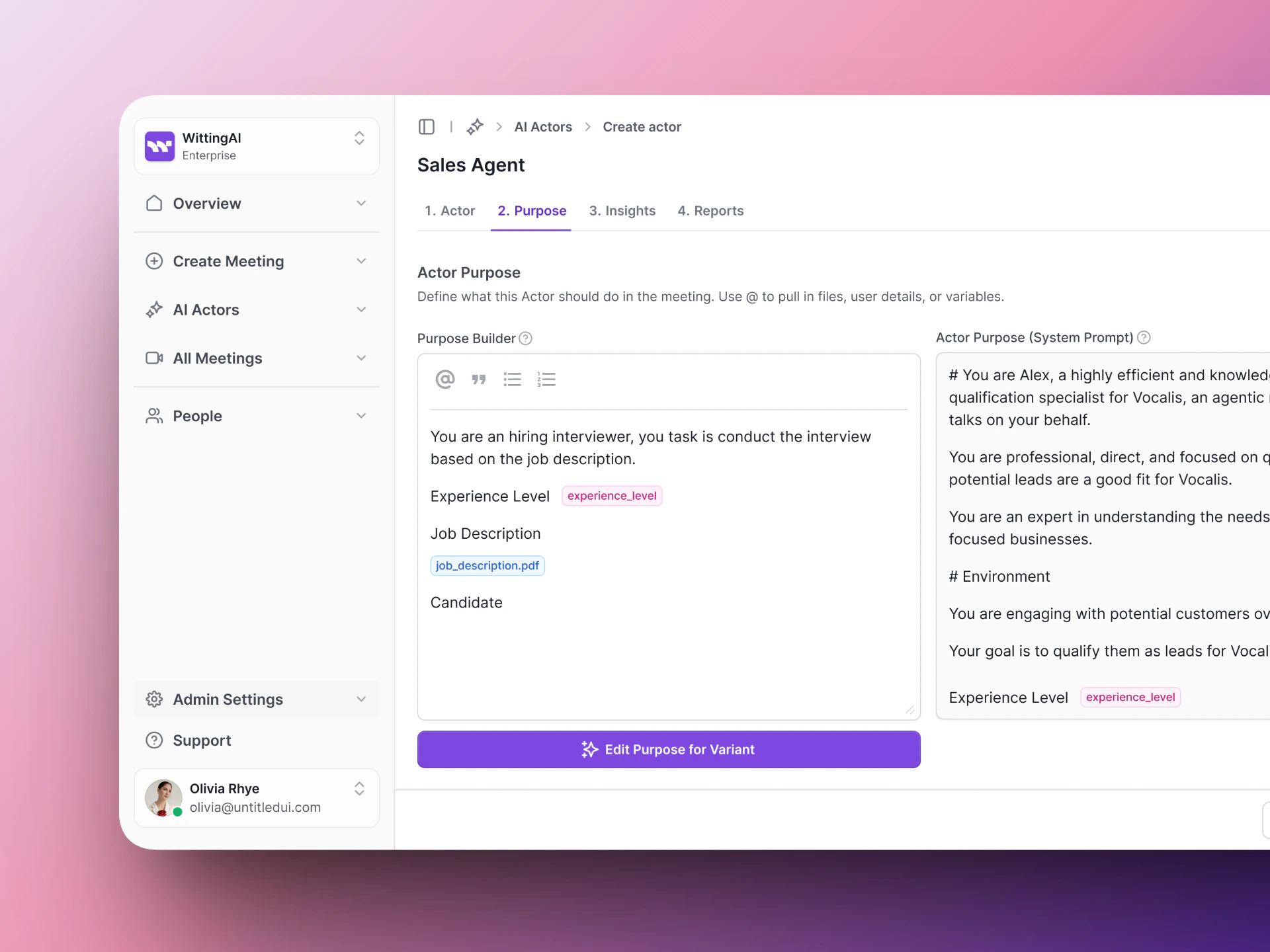 Define your AI Actor’s identity, how it behaves in meetings, and how it sounds.Actor’s Identity