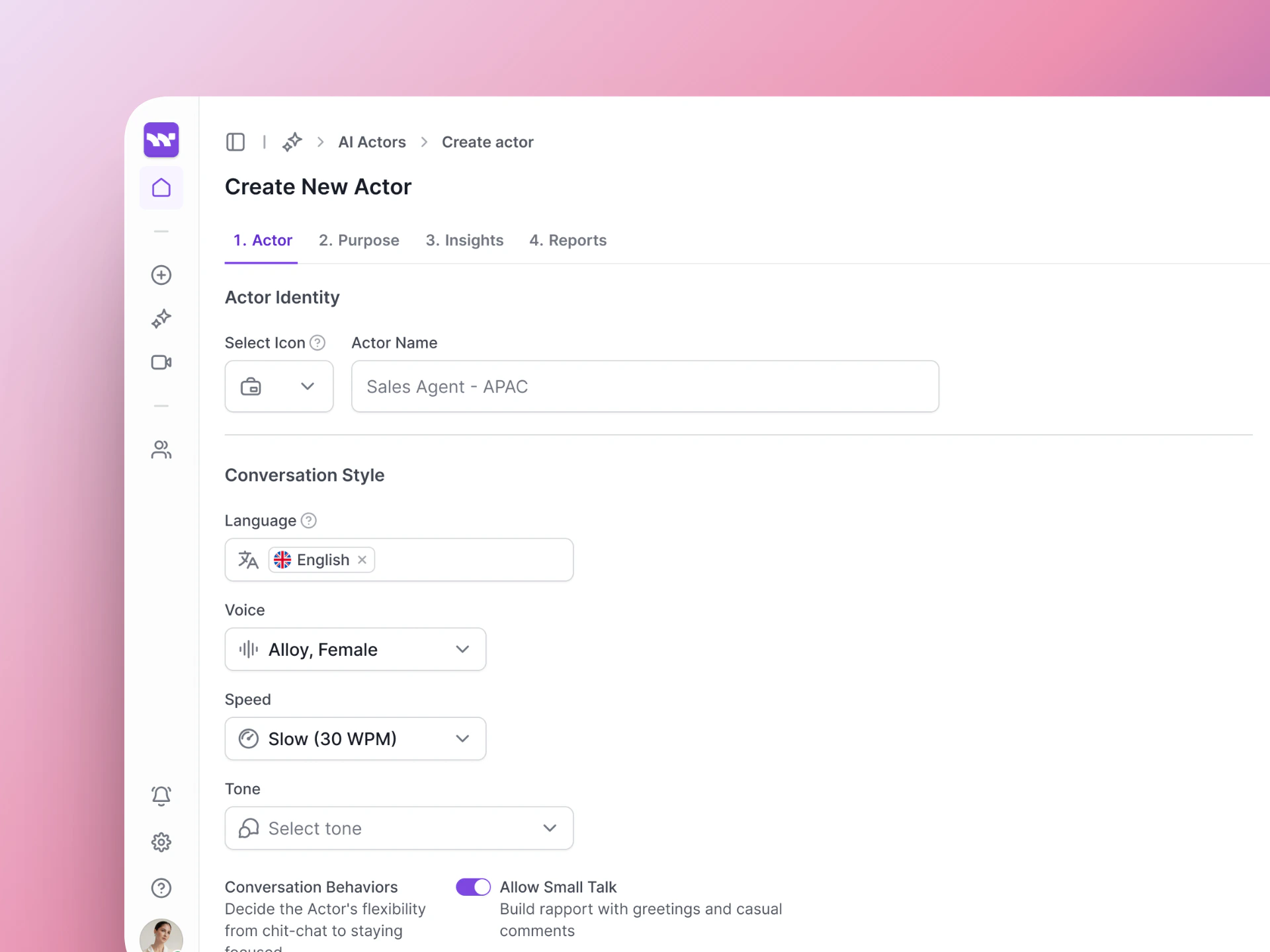 Choose who drives the conversation:- Actor-led — The AI Actor leads with dynamic questions and follow-ups.