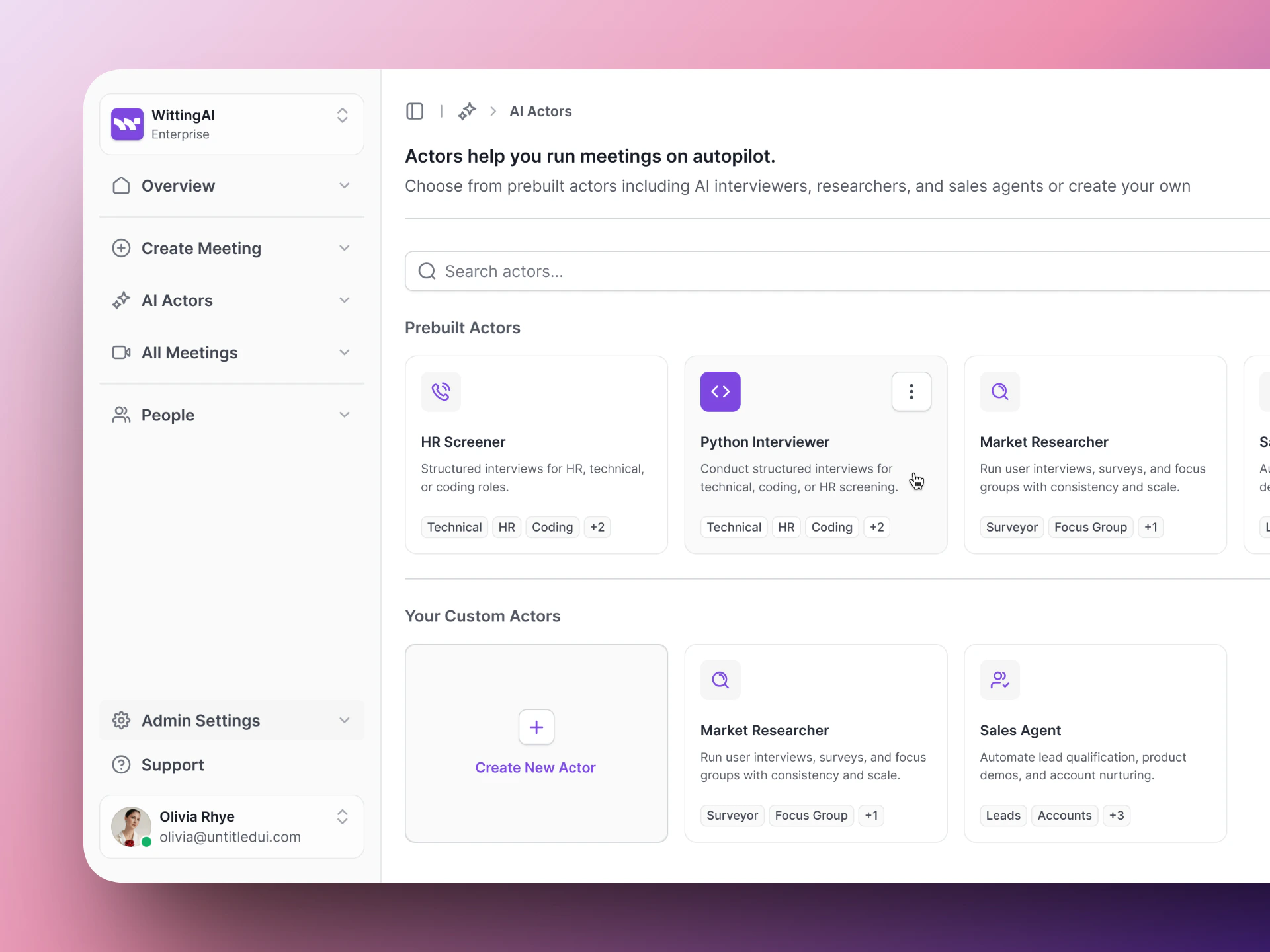 Set up your first AI Actor in minutes.